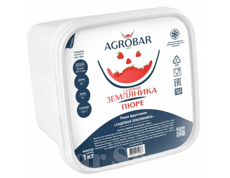Пюре из земляники AGROBAR в своём купаже имеет более 10 сортов садовой ягоды. Основные регионы: Подмосковье (Совхоз имени Ленина) и юг Воронежской области - г. Павловск.